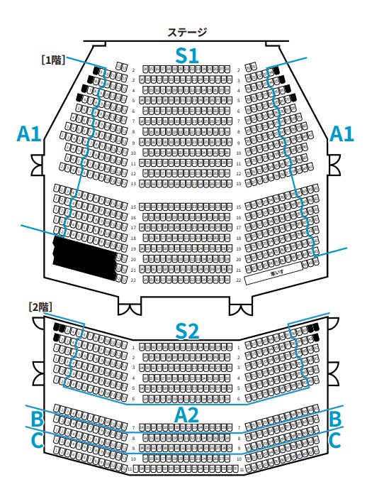 | S1席8〜13列目 | 舞台との距離感が少しあるので首も疲れず観やすい。 |